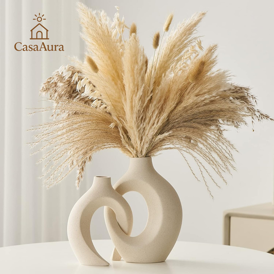 CasaAura™ Vaas “Lysfjord” Handgemaakte Witte Keramische Vaas voor Moderne en Scandinavische Interieurs